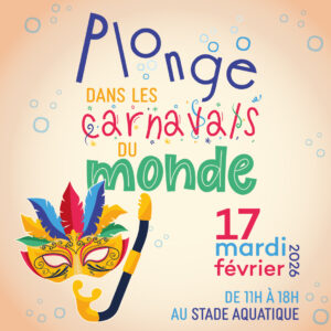 De 11h à 17h : parcours aquatique dans le bassin d’apprentissage et jeu de piste sur les carnavals du monde entier